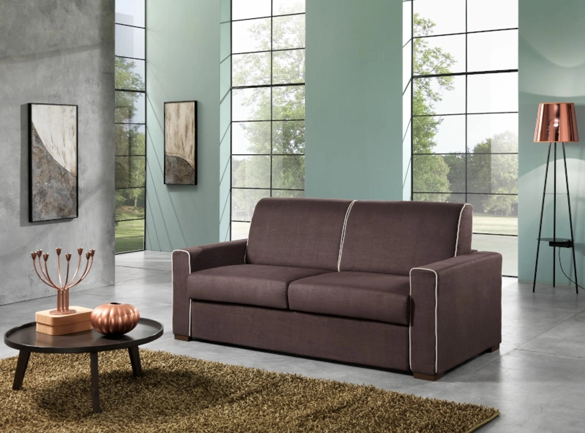 Divano Vesuvio di Hoppla: crea uno spazio intimo e confortevole in spazi moderni di gran classe. La serie di divani del marchio in questione propone molteplici soluzioni originali per impreziosire il soggiorno in nome di funzionalità, comfort e stile. I nostri Salotti vengono progettati per essere abbinati a elementi accessori di ogni tipo, come tavolini, lampade e piantane oppure in combinazione con ulteriori divani in tessuto. Se desideri imbottiti con letto come il modello nell'immagine, caratterizzato dai volumi che invitano a trascorrere i tuoi momenti di riposo. Il catalogo Hoppla offre molteplici soluzioni per impreziosire l'ambiente in nome di funzionalità e design, mettendo al centro il tuo comfort.